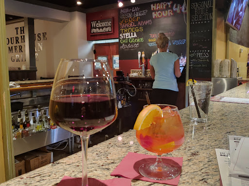 Server was excellent and the atmosphere was ok, but thats where the good stops. Everything on the menu sounded delicious but unfortunately they couldnt execute. Spinach and artichoke flatbread was doused in balsamic glaze when it wasnt even noted in the description that came on it. Considering thats a very strong flavor it should be noted in the item description. My boyfriend hates balsamic so we had to send it back for one without it. New one came out completely burnt. Then my sandwich (caprese panini) arrived and was a warm roll with ice cold mozzarella cheese and tomatoes in it, along with balsamic glaze (this time it was noted in the item description) and one leaf of basil in tact, not chopped and sprinkled on the sandwich. The hand cut fries wouldve been a great addition since most restaurants serve frozen fries, but they were not cooked all the way through. When I mentioned the panini was cold the server said other patrons had complained about that too but the cook said thats how its supposed to be. I explained a panini is supposed to be pressed and grilled and he said they dont have a press and the cook said the cheese and tomatoes are supposed to be cold. Cinsidering there are several panini items on the menu perhaps a name change is in order since they dont actually serve paninis. My boyfriend ordered the pesto pasta which he didnt even eat as it had no flavor. Unfortunately it seems this corner will once again be home to an abandoned building as I cant see this place surviving based on the food. We overheard the people at the table behind us say they didnt like the food either.