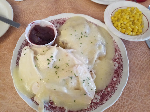 Based on the reviews I would have never gone here. My friends insisted it would be good. Nothing was good. We did not get breakfast, which I would think would be ok. The waitress was very nice and service was great. We tried the turkey dinner, meat loaf, potato pancakes, salmon, and prime rib. Any home cook could have made it as good if not better. Nothing was inedible except for the dressing/stuffing. I would never go again by choice.
