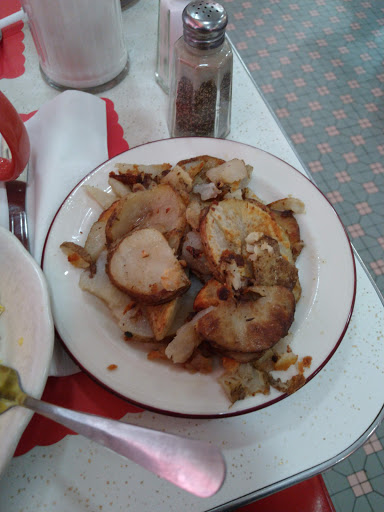 The ham steak was delicious and generous (11 oz?). The raspberry vinaigrette that I chose on the side salad was oddly thick. Our waiter was helpful and patient. Nice ambience: a local twist on the classic family diner/meat-and-two. Very reasonably priced. They also offer a 10% senior discount. I came here on a long car trip, so Im no local, but I would come again if I were looking for food in this area.