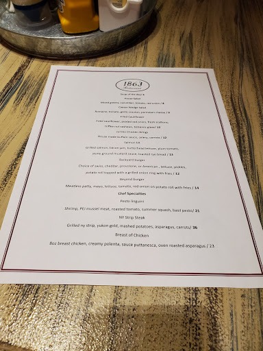 The 1863 Restaurant is located at the Wyndham Hotel in Gettysburg where my wife and I were staying for several days. My wife has severe food allergies and has difficulties finding places to eat. So she called ahead and asked to speak with the chef to explain her needs. Chef Claude Rodier personally called my wife back within a few hours of her call and took notes on her needs. He then told her that he was going to be out of town on the day we arrived but rest assured his staff would be able to cook for her within her dietetic limitations. Sure enough upon arrival, Restaurant Manager John Mejias assured my wife that they had been briefed by Chef Claude to expect my wife and I as well as his notes on how to prepare meals for her. My wife was able to order a different meal each time we went to the restaurant and each time it was expertly prepared. We ate several dinners, lunch and breakfast at the restaurant and can attest to the quality and freshness of everything we ate. While there are many restaurants to choose from in Gettysburg, the 1863 Restaurant certainly deserves to be on your short list of great places to go.