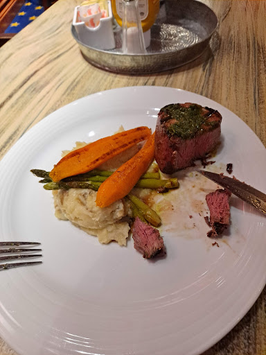 If I could give no stars, I would. Our server, Janet, was not attentive. We saw her three times. Once fifteen minutes after we were seated to ask if we were ready to order, without even taking a drink order. She brought our appetizer. A manager brought our entrees and ignored our empty glasses. No one checked on how our meals were. If they had we could have at least brought our displeasure to their attention. We did not see her again until we flagged her down to ask for our check after my husbands drink sat empty for thirty minutes. The food was subpar and not worth the prices. Mind you, the restaurant was not busy which would be the only possible slight excuse for such abominable service.
