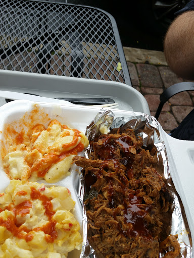 Ok lets start off with the best thing first, the pulled pork which usually is just Bland plain and tender and okay at most places but not here grab the pork here and youre going straight to flavortown thats right the pulled port has this perfect amount of barbecue sauce little hint of vinegar the right amount of spices and it just makes it perfect. The second best thing Ive had which I did not expect was the chicken had this jerk style barbecue spice rub that made it delicious with a little peppery back note I was very surprised. The beef brisket which is my favorite at most places was okay was not bad wasnt one of the best places that I ever had before had a little bit of flavor bark and was very tender but did not stand out more than any other regular place that Ive had it. The beans remind me of my moms brown sugar beans I like mine with a little bit of ketchup and a hint of vinegar. These werent too sweet so I would prefer a little more brown sugar but better than most places do. Im not a big fan of mac and cheese unless its really really good and this just seems like it was my least favorite item that I ate here just regular mac and cheese and as you see the reviews just seems to be that way I would probably try to throw some more cheese varieties at it and maybe some panko topping. I definitely recommend pulled pork Ill be going back just for this item and maybe to try the bacon and the pulled pork tacos which have to be banging and Im sure.