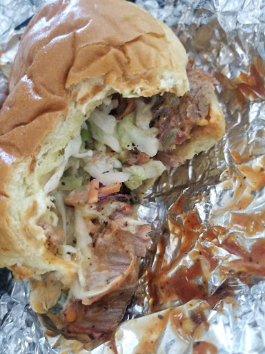 We had brisket and pulled pork sandwiches. Shared with each other. So tender you can cut it with a fork. If you are lucky as we were they had mac and cheese as a side dish. Coleslaw was coarse chop, but manageable. The hidden gem is their fries. Dont know how they prepared them, but they were crunchy and good. I saw a lot of folks taking pans of bbq out, so this must be a destination for BBQ food for the area. Visit their website for more info on catering. We plan to use them at a future event.