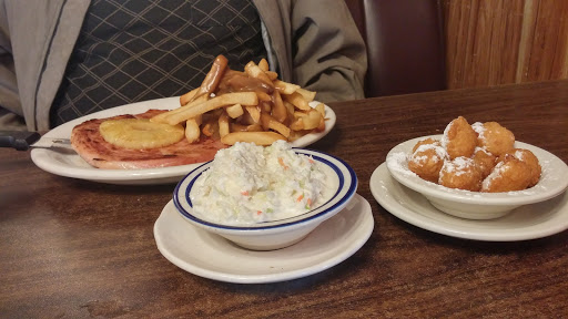 Good Meal for a decent price. A nice family oriented place. Family owned, and operated. The Owner is Greek. Has some exclusive Greek items on menu. You get your choice of 3 vegetables, or 1 scoop of premium ice cream with a meal. They have friendly servers. Their Black Diamond Steak is very good, and one of the popular choices. Off street parking.