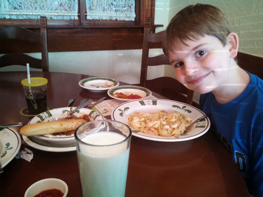 We came as a party of 6 adult and 2 children under 3. We were seated at a large table in a slightly enclosed area which made letting the kids wander a possibility without disturbing other customers. Our needs for ordering for the kids were met with flying colors. And for that, I give this particular olive garden a 5. Otherwise, I mean really, it is just olive garden. Its good food, but not the best. Come here for the service and convenience, not the food.