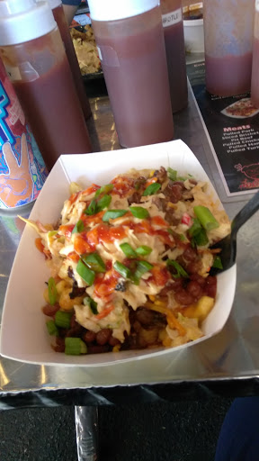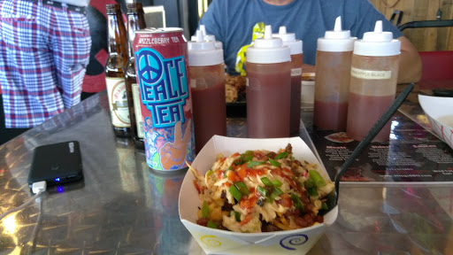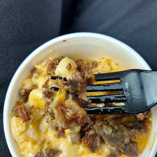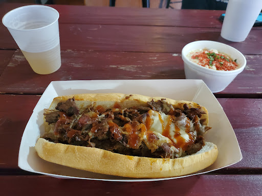 This is the best BBQ that my husband and I have ever had. Im not even kidding. No wonder these people win contest after contest! Really cool and unique little place. Has great TVs with football on Sunday while we were here. My favorite two BBQ sauces were in the fridge you have to grab them... Pineapple blaze and smoked apple. Unique cool drinks in the refrigerator cases. Some locals! We bought a couple to bring home to our daughter. The locals know and love this place. Steady lines throughout our stay on Sunday at 520. Line moved fast. You can order ahead. Love love love this place! Update.... Cant get enough and came back for more. Tried the burnt end Mac and cheese sandwich and eh. Id have rather have had the Mac and cheese with burnt end minus the sandwich part. The three alarm Philly cheesesteak was blisteringly hot, hubby had to order slaw to cool it down. The slaw is some of the best weve ever had. The Sriracha slaw is amazingly good. Great crowd beautiful day great service and so worth coming again!
