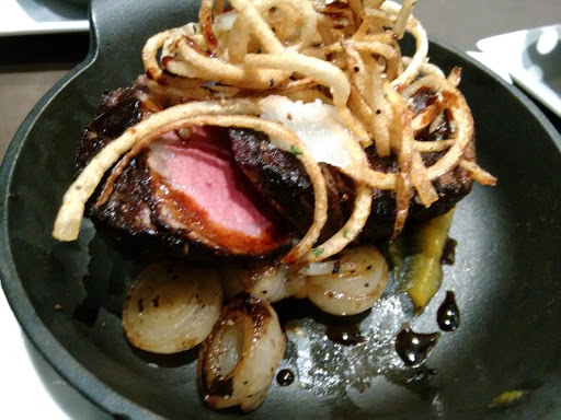 Theres 2 places to eat in the Hilton, and this is the casual choice. Small plates are the specially, but there are lots of choices including burgers and salads. Food is well prepared and served quickly. The burger i had recently was very good and the garlic fries were excellent.