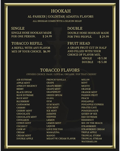 Ive been to several Hookah lounges across the United States. This lounge in particular sets the standard for customer service and products. They use the best tobacco in a wide variety of flavors. They arent stingy with coals so you get the maximum smoking experience. Their price points for everything they offer are beyond reasonable. Dont make the mistake of settling for anything else. Make it your first choice. I couldnt recommend it higher. It is the best.