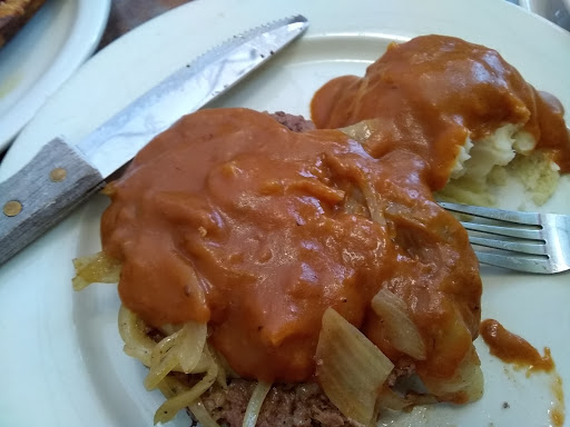 We went with my parents. I ordered the chicken cordon blue dinner, but the cheese sauce topping was burnt. The stuffing I ordered as a side was sweet with raisins and a sweet glaze on it, to which they added chicken gravy. My husband ordered chicken croquettes and they were dry and hard from being in a steam tray too long. Overall, this just reinforced my impression from the last time I ate there and the ladies room had an exposed sewer pipe in it.