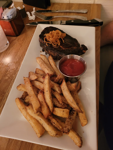 Easily my favorite steakhouse around. I first started coming here post-makeover without knowing it was on "Restaurant Impossible" and thought it had a warm, modern-western style. The servers are all friendly and attentive and makes for an unpretentious place to eat, nice and relaxed. Doug, the owner is always so friendly and attentive, you can tell he truly cares. The steak is fantastic, the best feature being the taste of charred, smoky wood in the flavor. You wont get that at any of the other steakhouses around here, not that Ive found. They have variations on things like mashed potatoes, offering them with jalapenos and other delicious ways. The dinner rolls are slightly firm/crispy on the outside and soft and airy on the inside. Ive always had a very pleasant experience here and always look forward to visiting.