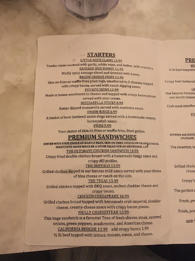 This is our favorite neighborhood bar/restaurant! The hot wings are delicious, the crabcakes are full of crab, not filler, the bartenders are attentive and friendly and the owner, Bill, is often on hand, and is prompt to deal with any concerns or special requests. This is a smaller restaurant, no smoking, so it is a good option for bar or family dinner. They recently had a lunch special "crab grilled cheese" that was to die for, and hopefully it will be a frequent option.