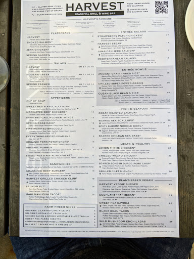 Took our out-of-town daughter to Harvest this evening. Two very different outcomes: The food was very good. The service was TERRIBLE. Ordered drinks and appetizer. Appetizer was delivered before drinks, so sat and cooled. No water was offered. We asked for water - nothing happened. Food was delivered after 20 minutes. Still no water. Asked a second person for water - no water. Asked a third person for water after 40 minutes - was told that "we are out of glasses - well try to get you some water when we wash them" (and it was not that busy). Got water after 50 minutes. When dinner finished, bus person removed two of three plates, and never picked up the other one. Was Never able to get a refill of iced tea. No condiments (salt, pepper, sugar, etc) on table or offered. After dinner, had to practically tackle the server to get a check. Ive now been there twice - the first and last times. This place just doesnt care. Too bad, as the food was well above average.