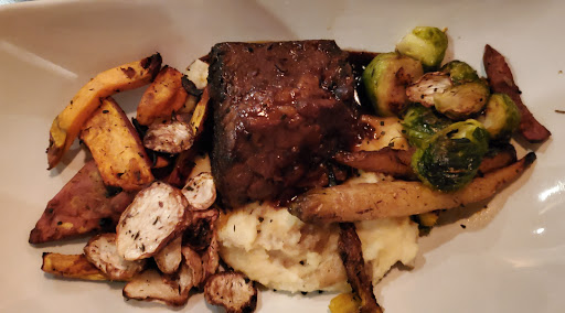 I have been to this restaurant in the past and it was excellent however I took my husband there for the first time and was so embarrassed. After we were seated it took the waiter 15 min to arrive at our table we ordered our drinks which I ordered a burbon drink that took 20 minutes to make apparently and was so loaded with mint i couldnt taste anything else needless to say I only had a couple sips it was that awful. We ordered the cheese board the bread was so hard we couldnt even break it with our hands. We also ordered the Greek salad which was excellent and the 3 bean turkey chili. For our entrees I ordered the braised short rib which was delicious and me husband ordered the scallops. 2 of his scallops were not fully cooked and he was not fond of the risotto that was served with his meal. For dessert I had the chocolate salted Carmel it was as if I was eating chocolate icing out of the jar. I was offered another dessert which I stated I would take it to go but never did receive it. Again extremely disappointed with this past visit.