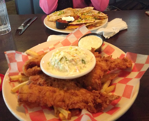 The service was quick and very friendly. Five stars for being a comforting stop after a long drive. We shared an order of classic fish n chips. This was no tempura with a few crisp fries. The portion was large, served in a foot wide plate it was plenty for two. The fish was delicious and slathered in batter. The fries were a bit oily to my taste. The creamy salad and tartar sauce were too heavy on mustard flavour for me.