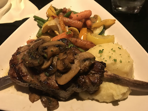 Atmosphere was great. Service was awesome. Brushetta appetizer was excellent. Salads and dressings were very good. BUT DINNER WAS TERRIBLE. Sent my veal frangelico back to be heated because the meat, mashed pototoes and broccoli was barely room temperature. Came back on a different with half the amount if food it left with. Potatoes still cold and any coating on the veal was gone. My husband ordered the bone-in ribeye med rare..... came completely cooked brown throughout, same sides so same issues. My daughters pasta Bolognese was a greasy mess with no actually red sauce in sight . Check totaled $115. Not sure who prepared the food to get the past ratings, they must have not been there this evening. Additionally, the same issues with the table nearby.