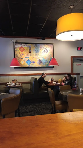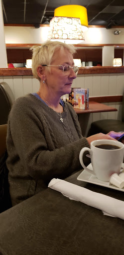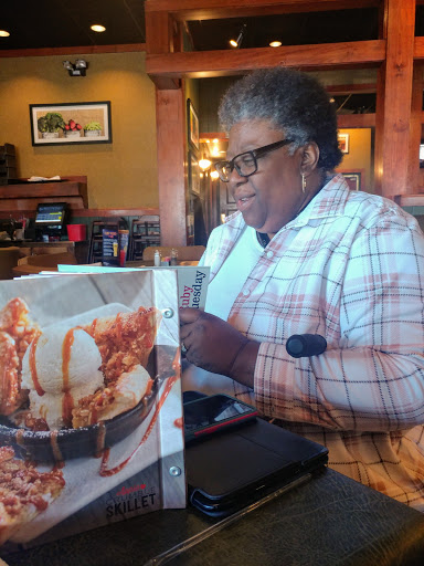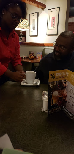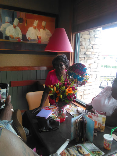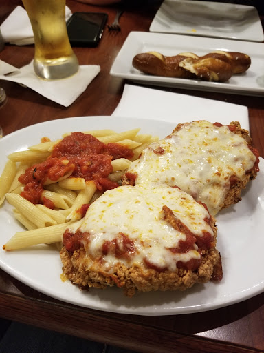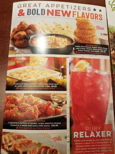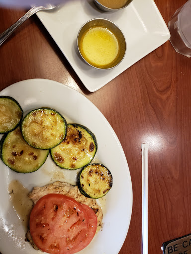 The service has gone downhill here. Slow. Our salad and appetizer plates were not cleared before entrees came out than waiter was annoyed that there was no room to put the dinners down. And, overall, disappointed in the changes that the chain has made to the menu. No more mozzarella sticks and other favorites gone.