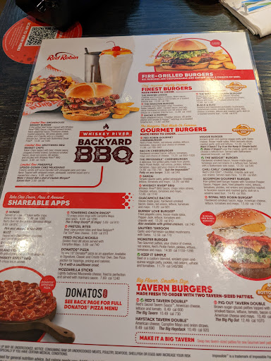We wont be returning to this place ever again. 1st and LAST visit. i wasnt familiar with the menu an told waitress i just wanted a plain ole hamburger. when it arrived they announced it as "Heres your hot n spicy siracca hamburger!" they gave me another burger but put THREE hamburgers on our bill when there was only two of us. Oh an lets not forget your "Entertainment fee!" are u people serious? those little game gadgets that are on every table actually CHARGES u to use it. God forbid u place something fun an FREE for your customers to play with while waiting on their food! Outrageous. Nope, never going to Red Robin ever again. and btw the burger really wasnt that good n froes were soggy.