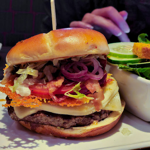 The Smoke and Pepper Burger is way over rated. My wife ordered one of the $6.99 Spicy Sriracha Tavern burgers and the waitress told us it came with two patties totaling 3 ounces. I ordered the Smoke and Pepper burger for $13.49 and was told the patty was 8 ounces. Twice the price for what should be over twice the meat by weight. It didnt look anywhere near close. The picture makes it look like youre getting a really nice burger. Not worth twice the price. And the bacon.... in the photo, it shows what looks to be some really nice slab pepper bacon. What shows up on the burger is NOT pepper bacon and it looks more like the paper thin bacon served in most Waffle Houses. Any thinner and you could read a newspaper through it. Save your money and go for one of the cheaper burgers.