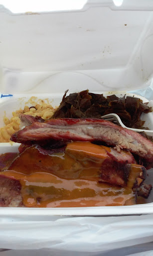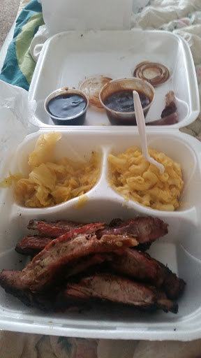 Decent bbq--you can tell theyre legit from the two huge grills right outside. They have a lot of sides--the cabbage was pretty delicious, and we got the yams instead of greens because they were out of it. In terms of the ribs, we got a half slab, which was quite a lot of meat, and very good. A few portions were a bit dry, but they went well with the sauce that came with it.