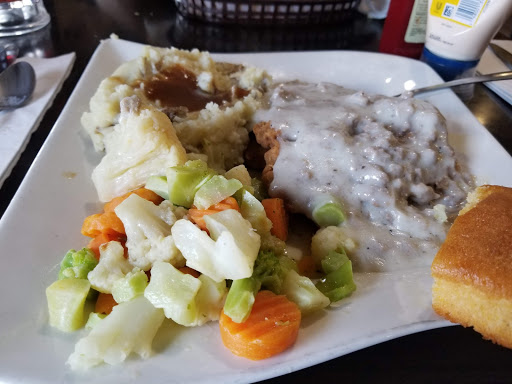 *Review has been updated after visiting a second time. 4 months apart * for the update Ive decided to lower their review from 3 to 4 stars. We had relatively good food and fresh salad bar. However, we ordered 2 meals of chicken strips (one kids and one adults) and they came out so over done they were burnt and dry. When we asked for one order to be remade the waitress had a bad attitude. We also experienced the same push back from the owner (similar excuse and such as our last visit). We were told that its just the coating and how they have to be cooked. No. No they dont have to be over cooked. The second batch was just fine. I wouldnt of knocked their rating for this if it wasnt the same type of issue we had last time. Its irritating to have the owner and the waitress ask how everything is if they dont want a real answer let alone have a poor snippy attitude about it. This is a semi hidden restaurant, located next to a gun store and shooting range. It doesnt look like much from the outside but its beautiful on the inside. 1st visit: Family of 4; 2 adults and 2 kids (11&2). Visited at 7:30 pm on a Friday. They were not very busy at the time, but it was a little late for dinner rush. The quick review- service was good and the food was pretty good too. We had issues with one plate but I wont knock them too much for it because they took good care of us with it. Detailed version- We ordered: 1. Unlimited soup, salad, and dessert bar with Philly Cheese Steak and raspberry tea 2. Unlimited soup, salad, and dessert bar with water to drink 3. BLT, which went back for the Kentucky dipper with root beer to drink 4. Kids Hamburger (included a drink) Our total was $48 with tip. First, the salad bar was fresh and neatly kept. We were very pleased with this. Im especially happy to find a place that doesnt dip their salad into all fresh (a preservative) that I cannot eat. They had a lot of dressings to choose from and a pretty adequate selection of salad fixings. The Philly Cheese Steak was good and the fries were great. The BLT tasted like the bacon was just starting to turn bad and we requested a new sandwich. We appreciated how willing they were to fix it, even though they kept explaining the bacon was fresh. The Kentucky dipper was a better fit and was devoured. The fries, again, were delish. The kids Hamburger was decent. Hand made burger, not store bought frozen. Very little added seasonings and came on a bare bun so we could add what we wanted. We all enjoyed the desert bar too. They had sponge cake and a bunch of jellied fruit toppings as well as soft serve ice cream and LOTS of toppings. Near the entrance/exit they have a candy shop area where you can buy some chocolates and candies; most of it by the pound.