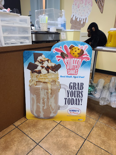 Pretty decent ice cream, its a great addition to the Hershey area. Weve been lacking a good ice cream shop for a long time now. Well known for its Gorilla Split (a gigantic bowl of ice cream - if you eat the whole thing they take your tables picture and put it on the wall) The whole place is decorated with stuff monkeys, gorillas and other wild animals. Prices are fair, and it has ample parking.