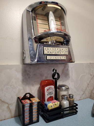 The Soda Jerk is a 50s style diner and soda shop. The exterior is unassuming, but the inside is clean and well put together. The menu is huge and offers a great deal of variety. The food is very good; I had the chicken croquettes, and my wife had the primo panini. Our server, Cindy, was very courteous, helpful, and accommodating. I ate too much to order desert, but Ill definitely be coming back in the future.