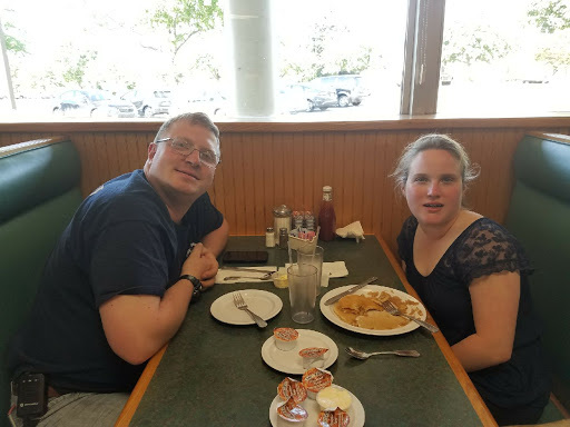Its an outdated breakfast joint with barely average food. Its only draw is its constant, whiny fight with the shopping center. Everywhere you look, theres a sign complaining about their legal troubles with the shopping center. Youll get the same quality of food from Dunkin Donuts or McDonalds so just go there.