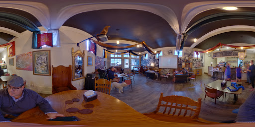 This themed coffee shop is pet friendly. They offer great food choices and a variety of coffee. While waiting, you can play board games or read books. The town is full of creative friendly people.