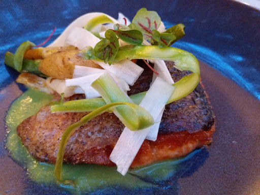 Truly creative takes on classic dishes. Pricey but absolutely delicious and well-portioned for the price. Creative and tasty vegetarian options. Friendly service. Seasonal and locally sourced produce, protein, and dairy. Some produce is grown on site. Elegant atmosphere without requiring formal attire. Perfect for anniversaries and date nights.