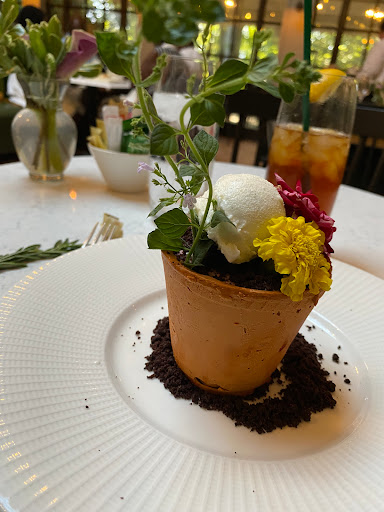 Food heres delicious, and the themed dishes were a nice touch (bread in a pot, flower pot dessert). Always an experience to get to eat the food thats grown on site/nearby. Only complaint is there was a fly that kept buzzing around our food, very annoying.