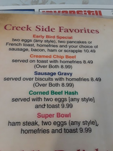 Recently returned in my travels between Westminster MD and Valley Forge PA. Enjoyed a hearty breakfast with a large omelette stuffed with peppers and cheese, and a side of Pennsylvania scrapple. My wife enjoyed her cream chip beef on toast. Prices were great although decor is a bit dated. Table service was very attentive.