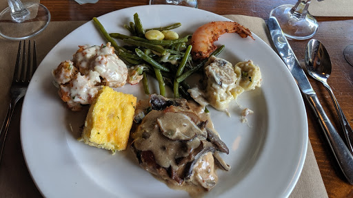 Food: Let me preface by saying that we went here for Mothers Day Buffet towards the end of the seating service. Having said that, and taking that into consideration, I feel that it is simply not worth it to do the buffet here regardless. Everything was not bad by any stretch of the imagination, but it was not stand out either. It was slightly above average buffet quality. I have eaten in the sit down restaurant which is much better and perhaps a better deal despite the fact that it is on the more expensive side. Atmosphere: Has a quaint farmhouse feel from the outside, and the surrounding property is picturesque. The inside has some of that charm but is also somewhat dingy and rundown. Not what you would expect really given the price tag. Service: Service can be OK, but also feels less than professional at times. Everything just has a "carnival" sort of feel to it. I mean it is weird to play phone tag to make reservations, kids serving boxed desserts, and waiters that disappear. No service was bad, but it was slightly below par and given what you are paying, disappointing. This is not meant to be a scathing review, just an honest assessment. You might very well love it here as its charm outweighs its quirks. Just make sure you know what you are getting into going in. As I have said, the sit down restaurant is another experience all together. I would give that 4 stars.