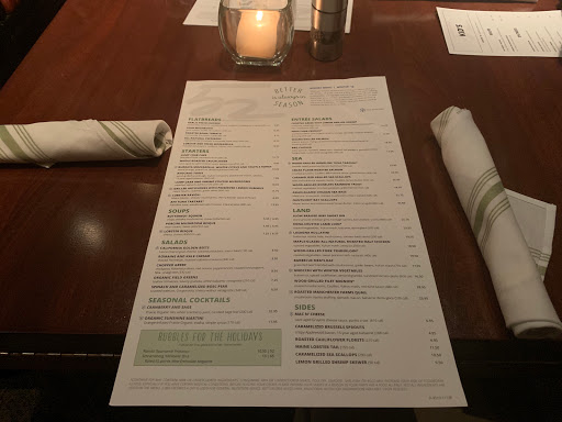 I love this place. Its one of my favorites now. Im fairly new coming here, but every time Ive been here Ive been extremely happy and enjoyed everything! I love the premise of the restaurant too using brick oven open fire grilling and mainly foods that are in season and sustainable, and they even have a decent, good selection to offer for food allergies and intolerances. The wait staff has always been excellent, as with the food from the freshness, taste and the presentation. My husband loved the lamb, and Ive loved the salmon and the scallops are the best! Their salads, guacamole and flat breads were superb too! I attended a party upstairs and the food and wait staff was just as excellent and attentive as downstairs. The sliders and lamb lollipops were awesome at the party, as were the little desserts. This place is definitley one of my main choices to go when dining out.