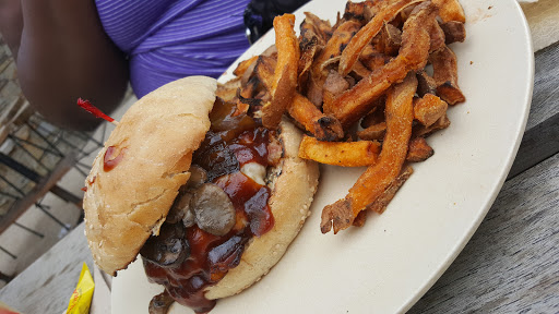 Amazing burgers, made even better by knowing that the cattle and all the produce needed come from nearby! Beef burger is amazing, turkey burger is more flavorful than it has any right to be, and the baked sweet potato fries are unusual and delicious. Companions have gotten the chicken and enjoyed it greatly as well. Topping options are good, and staff is always willing to make substitutions. The wait can be a little long, but its totally worth it. Patio seating is very pleasant for the more clement months. Oh, and even if you usually pass on drinks to go with your meal, do yourself a favor and make an exception - the rosemary lemonade is astounding.