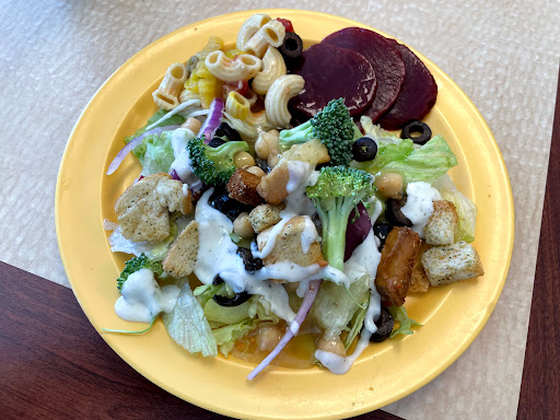 For the most part, the restaurant was clean. We arrived close to closing and tables available for customer seating were not "bused" in a timely manner and ready to use. (Minor problem for us.) The buffet line selection was kept full and the selections in salads, pasta, pizza pies and variations...including desserts were all stocked with fresh, pleasing to the eyes, items. Hot items were warm to almost hot... Cold items were kept properly chilled. No complaints there. I asked for help with an item because I could not cut it down to a smaller size myself. The male employee who helped me, did so willingly without any verbal or nonverbal negative complaints. I thanked him for his assistance. I spoke with two young female employees because I needed eating utensils and could not see them myself. Again, they were more than helpful and smiled as they spoke with me.