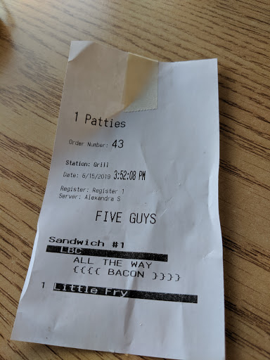 Fast, Clean and delicious. Everything you want from a Five Guys.