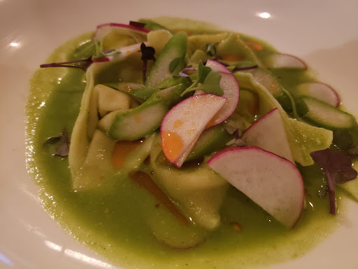 WOW! What a jem weve discovered this evening! We had a wonderful meal here, which consisted: Zucchini roll (A++), Pate Tasting (A, great taste of pates, but could be even better with more variety of pickled veg. accompaniments), Beet Gnocchi (A+), Pork Cheeks (A+), Oxtail Cannelloni (A+), Scallops (A in taste, but their size was really small), and Blueberry cobbler for dessert (A). Everything was very interesting, creative and delicious. The ambiance is very relaxing and hipster, and the service was nice, efficient and professional. Nick was very informative answering our questions, has a great sense of humor and communicating with him was a pleasure. The value was great too, and they have a great choice of beer and many other delicacies in the menu and in adjacent store. Well definitely keep this place in mind when in the area.