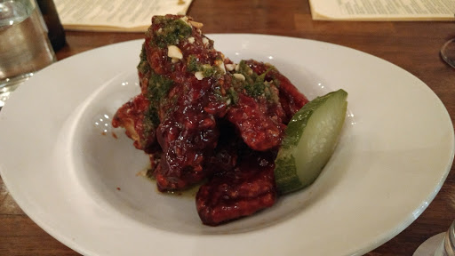 Dinner was nice but not blown away. Liked the charcuterie /beer / wine selection. Dishes were smaller but I would consider adequate. Like the theme and atmosphere. Our waitress could have done with better training. It took way too long like 20 minutes total to get our beer. Understand they were out of mine but a replacement should have been soon in coming. Rule #1 get the drinks out fast as you can.