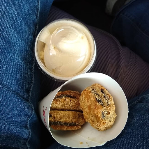 Sonic is a fast food joint where you have a choice to eat at the restaurant, order through drive thru, and order and serve while parked in a space. We chose to eat in a parked car. It was my first time at a Sonic and I was overwhelmed by all the choice. I ended up getting a frozen lemonade, large jumbo popcorn chicken with Hickory BBQ sauce, medium mozzarella sticks, and a small Banana Creme Pie. The food and drinks were delicious. Im looking forward to returning to a Sonic in the near future.