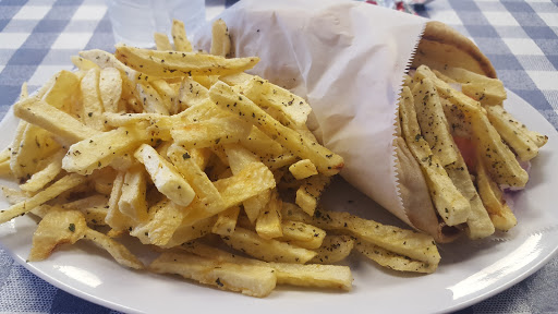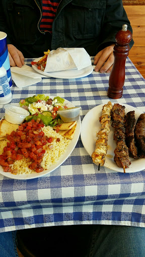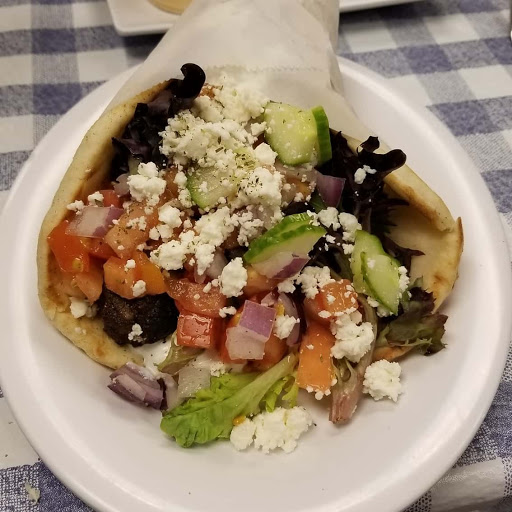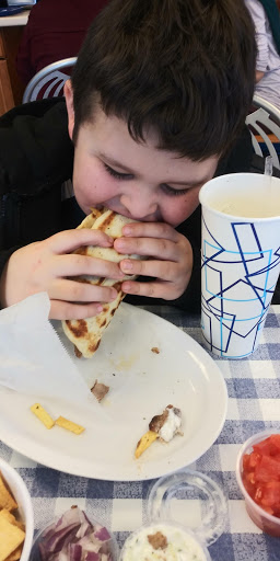 We went for dinner on a Friday night. They were not that busy. The pitas were hard on both ends so much so we hit it on the table and it didnt even crack. Then the calamari was saturated in grease and frozen (not even fresh) over $9.00 and we got seriously 5 pieces. The gyros themselves were ok but nothing to write home about. Ive had better for far cheaper at a state fair. The fries were bland and just a stock french fry. They arent cut fresh or seasoned. Im surprised they are still in business..oh and no high chairs! Sorry but this is a restaurant that serves frozen processed pre made food and passes it off for a profit! Shame! shame!