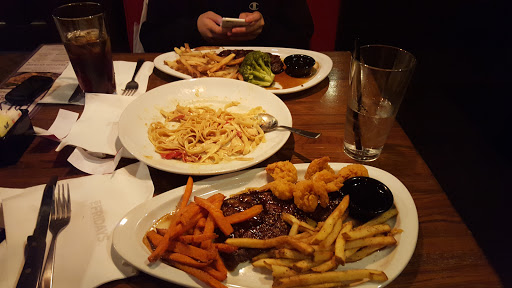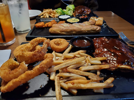 The first time we came here the service was horrible! Didnt think wed ever come back but last night we decided to try this place out again to give it a 2nd chance....HUGE MISTAKE. We got there around 6 and they told us itd be a 35 minute wait...no big deal I figured we would since it was that time of night... 35 minutes go by and we get taken to our table. Once we got to our table the waitress didnt come until 10 minutes later to get our drink order. Then, we waited another 10 minutes until she brought our drinks and we proceeded with our order. We ordered an appetizer, and didnt get it until 45 MINUTES LATER. Then, we didnt get our food until another 15 minutes later. We got our food, I got a burger and my bf got a burger, and they werent that hot, as if our food had been sitting out for a while, but we proceeded to eat anyways until my boyfriend found PLASTIC in his food! At first I thought it was the skin to an onion but we then realized that didnt come from no onion...it was plastic wrap with some dirty yellow looking substance on it. After that, we then noticed there was more underneath his fries! My boyfriend was pissed and we both lost our appetite because of this...I stopped eating my food, as well as my boyfriend cause who wants to eat food with trash on it. We immediately told our waitress (once we could get a hold of her) and she said she would go get the manager. Were waiting, and waiting, and waiting. Another 15 MINUTES go by until the manager comes to us. Dont you think when a customer says there is trash in their food you want to come right away?!?! No, this manager took his sweet old time and didnt come until 15 minutes later.... When he finally gets to us, the first thing that comes out of his mouth is, "So what did you put on....just kidding just kidding what did you find on your food?" First off: that is NOT something to joke about. Secondly: The way he said it was as if he was thinking we put something on our food and accidently said it out loud and when he did he tried to cover it up by saying just kidding. We showed him the plastic all over my boyfriends plate and he said oh that looks like the wrapper that comes on our french fries. He kept interrupting my boyfriend and didnt seem to care about this at all. He ended up making both my burger and my boyfriends burger free, but thats not the point. This place does not care about their service, nor Food safety. DO NOT go here unless you want to get food poisoning.