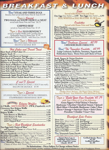 Tigers is a terrific family restaurant! The food selection and preparation are wonderful and the service is top notch! Prices are reasonable.