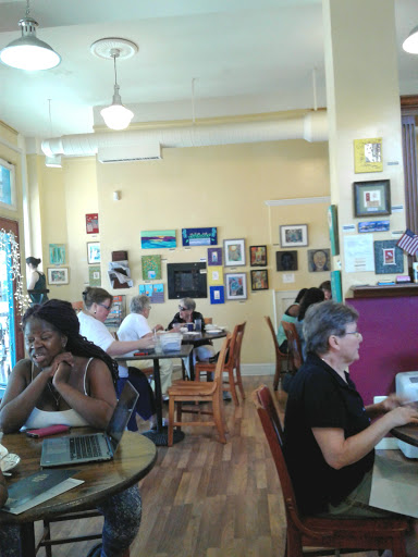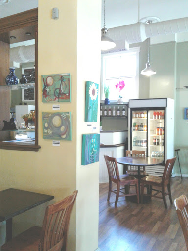 I really love this Cafe because its a neighborhood Cafe its comfortable you can take as long as you want to eat you can work on your computer the owners always there and they never rush you the food is excellent very reasonably priced the coffee is amazing and they make their own baked goods its not like one of those chain places its personal and the art is lovely.