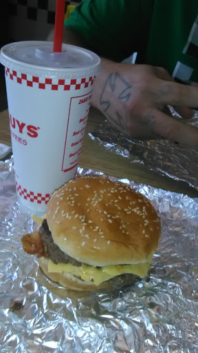 Of course Five Guys is great. I only gave 4 stars because I requested WELL done. They always say its well done but sometimes they are not... This order was alright but not well done enough for me. Other than that it was great location... Clean too.