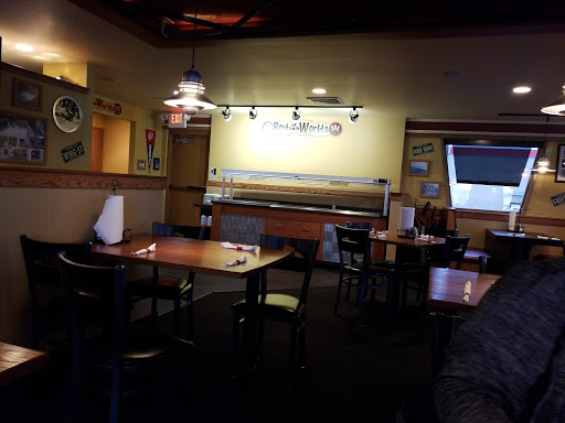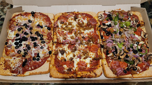Waitress was very nice, table tops were very sticky and dirty, either clean them right or put tablecloths on them. Mens bathroom was very dirty. Pizza was good,