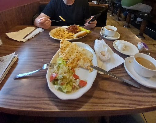 First time visiting today and I will never go back. First the waitress shows up to the table to get drink orders and hurry off, we asked for French onion soup and it must have bothered her. It took her quite a bit to come back for our order & to bring the French onion soup. She sets it down one has the cheese melted and brown as it should be, the other has shredded cheese thats not melted. I complained and she says lots of people like it that way. Ive never bought French onion soup and had the cheese unmelted. We didnt stay any longer, I sent the soup back and paid for drinks and left. What a let down.