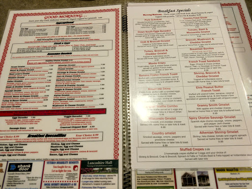 A nice, large open restaurant with a good selection of food. The host was very friendly and our meals were delicious. They have a limited breakfast menu after 11 am, but I was able to get a cheese omelette with hash browns and scrapple. Not many places carry scrapple and this was browned on the outside just the way I like it. Be wary though if you cant have gluten. I suspect the french fries and home fries may have had flour, but I didnt ask, so I cant be sure. If you have celiac sprue, you may want to inquire first.