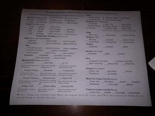 I have had Sushi all of the country and this is by far my favorite spot. I bought a Chiropractic business just down the road in September of 2014, and started trying different restaurants. Mino has become a staple. The all you can eat Sushi menu is awesome. Its not just full of simple rolls like Philadelphia and California. They have a huge selection of specialty rolls on there all you can eat. You wont be disappointed