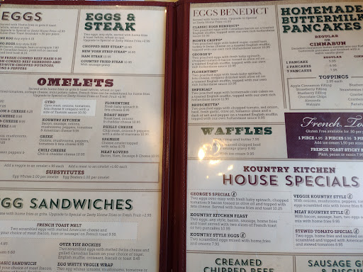 Kountry Kitchen is the place to go for a delicious hot meal in a casual, comfortable atmosphere! The staff are very friendly and attentive and the breakfast never disappoints.