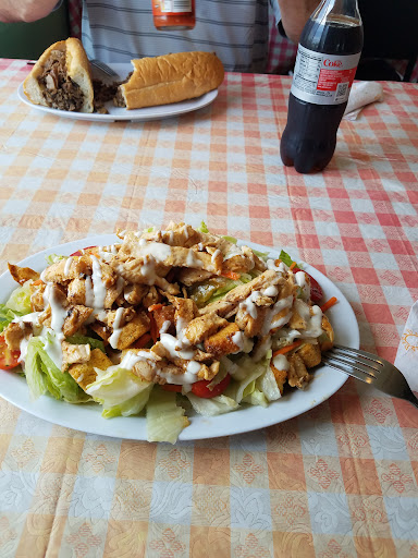 Small Hoagie / Sub / Cheesesteak place on Simpson Ferry & Wesley Drive. It is right next to the east gate plaza. Ive been there for lunch 3 times now in the past month. I originally reviewed this, but filed it under the wrong address, there are like 3 businesses with this same name in the HBG / MBG / CAR area. You can buy an 8, 10 or 12 inch cheese steak, cheese, onions, the works, whatever you want. fries are pretty decent, a standard lunch costs around 7 - 8 bucks, its pretty good. it has a similar layout to what Genos has with photographs of the owner and their family all over the country with different celebrities, famous people, politicians, musicians, etc.